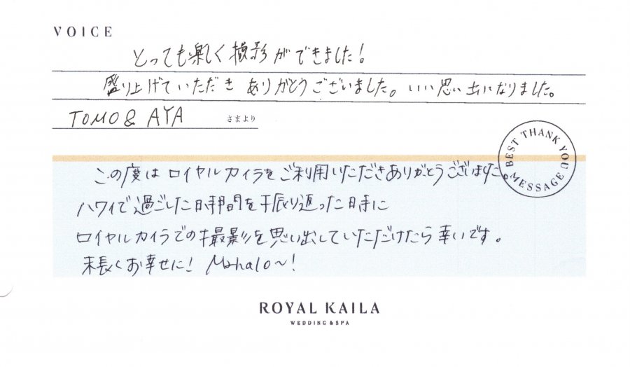 2024/01/05 Tomo & Aya 様