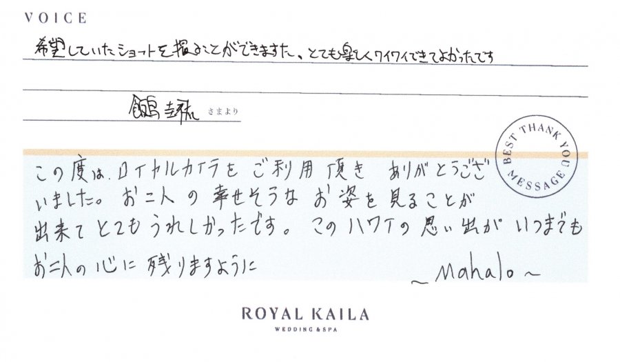 ハワイで結婚式・ロイヤルカイラウェディングTOP > ビーチフォトギャラリー